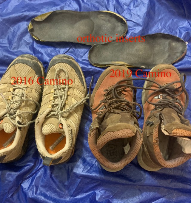 Be kind to your feet and give them the proper care and footwear they need to succeed on your Camino! Let’s begin with moleskin to help prevent friction, hotspots, and blisters. You can buy this at any drugstore or supermart store; I precut the moleskin and packed several packets. I appreciated my orthotic arch support, gave me the comfort I needed,purchased at The Walking Company(this is optional). The Injinji liner socks are breathable and helped to protect my feet from moisture and blisters. My Smartwool socks made from Merino wool, were comfortable and dry. Finally, the boot or shoe? I used both on two different Camino’s. I highly preferred the ankle boot over the shoe. I did not want to strain my ankles without support from various terrain; rocks, hills, grass, gravel and mud. When I went shoe shopping, I brought all my stuff: the orthotic inserts, liner and wool socks and tried multiple boots and shoes. I hiked in my boots and shoes for about two months before my Camino. I was able to recognize hot spots, and what what worked and did’nt work for my feet. Soaking my feet in a bucket of cold water was an excellent way to soothe my tired feet! I never had a problem finding a bucket at any hostel.