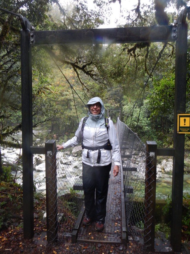 Walking in the rain can be extremely uncomfortable in wet, damp clothes if your not well equipped. I prefer the rain pants and rain jacket over the pancho. I used Columbia brand rain gear, both light weight with air vents. One photo was from a different hike in my rain gear.